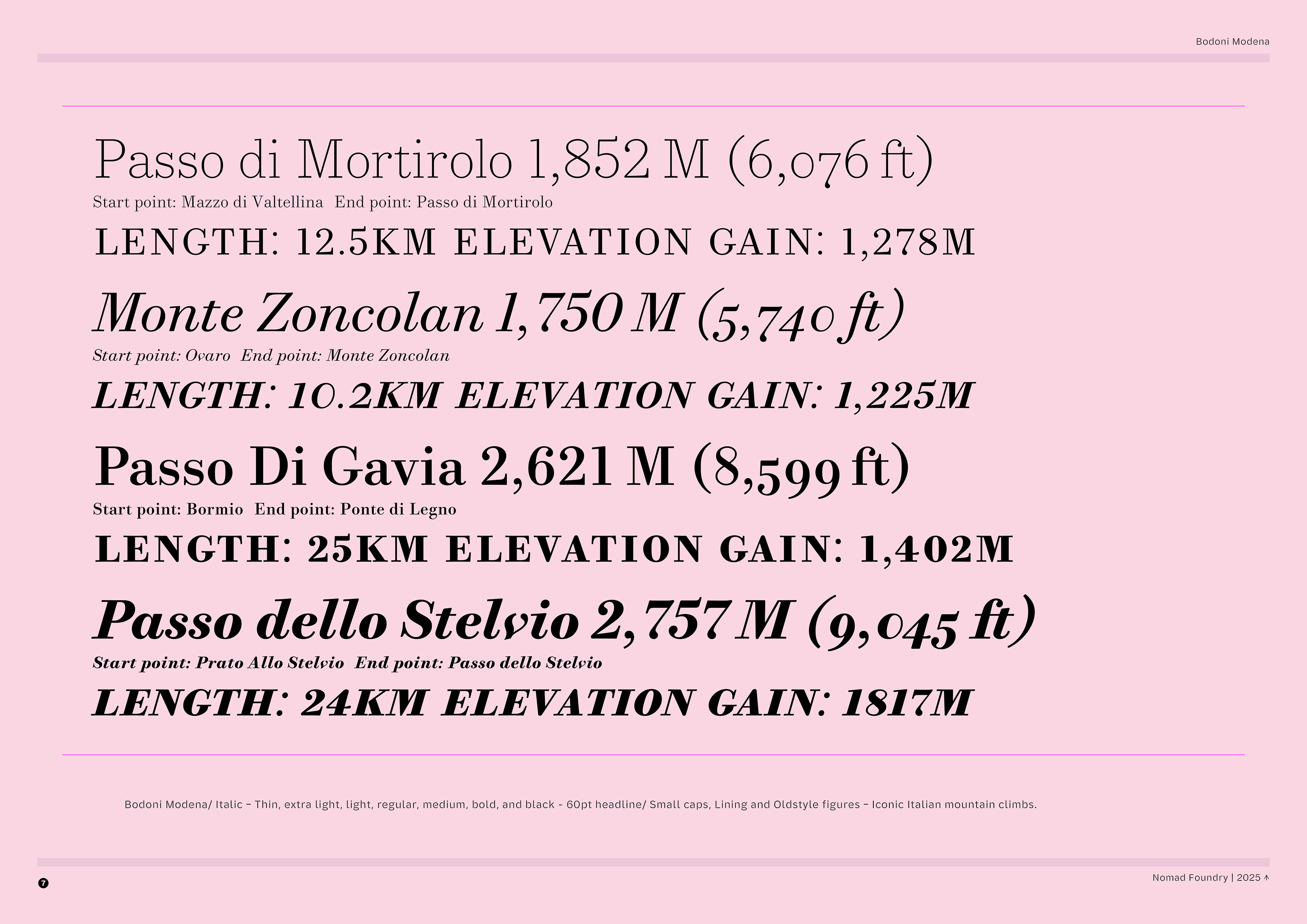 Bodoni Modena, Bodoni Modena Italic - Type Specimen